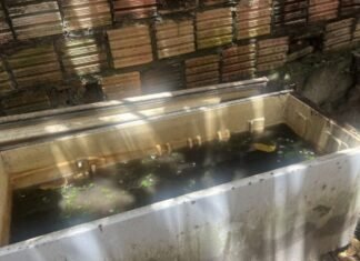 Um carro caiu dentro de uma estrutura de concreto após invadir parte de uma...