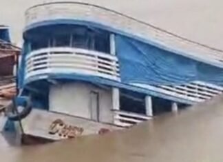 Embarcação naufraga na Orla de Manacapuru no Amazonas