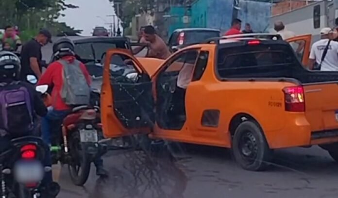 Na manhã desta terça-feira (13), um acidente envolvendo dois veículos — um amarelo e outro preto — foi registrado na rua Campos Sales, nas proximidades do Shopping Via Norte, no bairro Santa Etelvina, zona norte de Manaus.