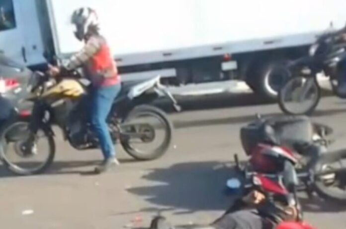 Imagens divulgadas nas redes sociais mostram as vítimas caídas na pista, sendo auxiliadas por pessoas que presenciaram a ocorrência. Entre os feridos estão o condutor da moto e o passageiro.