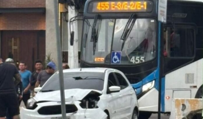 Uma colisão entre um ônibus da linha 455 e um carro de passeio deixou uma das faixas da Avenida Constantino Nery parcialmente bloqueada na tarde da última segunda-feira (9), no sentido bairro-centro, em frente à Estação 2 (Arena).