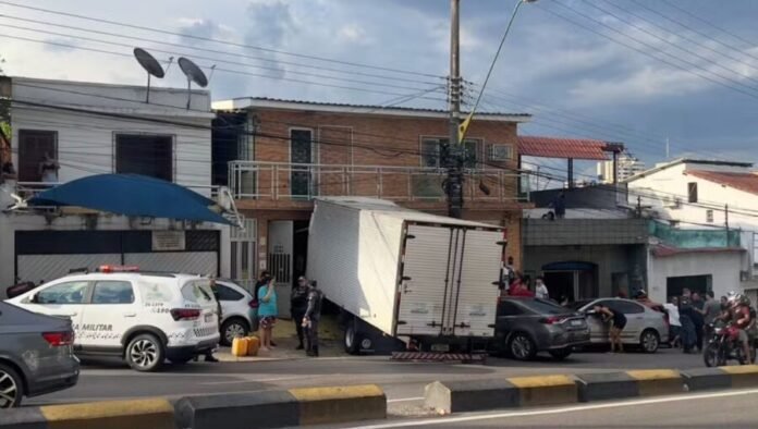 Um acidente grave foi registrado neste sábado (23) no São Jorge, Zona Oeste de Manaus. Um caminhão da Secretaria Municipal de Limpeza Urbana (Semulsp) perdeu o controle, atravessou uma barreira de contenção e invadiu uma residência, atingindo também três veículos durante o trajeto. O motorista foi detido por suspeita de dirigir sob efeito de álcool.