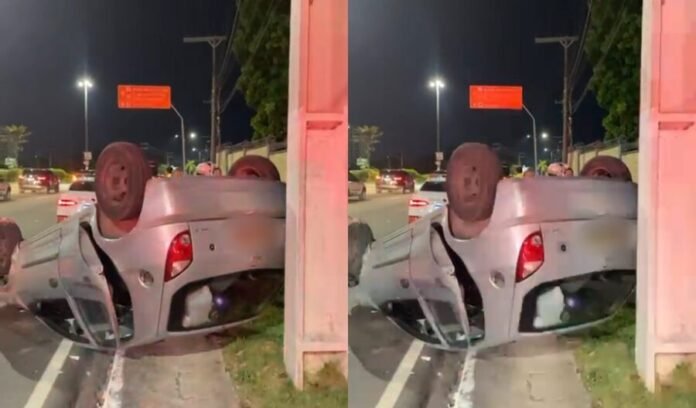 O acidente foi registrado em vídeo e circulou em aplicativos de mensagem, mostrando o veículo virado no meio da via. Ainda não há informações oficiais sobre as causas da ocorrência.