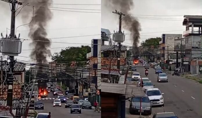 Um carro pegou fogo e causou um grande transtorno no trânsito na manhã desta quarta-feira (27), na Rua Duque de Caxias, na Praça 14, Zona Centro-Sul de Manaus. O incidente mobilizou equipes do Corpo de Bombeiros e deixou a região congestionada por várias horas.