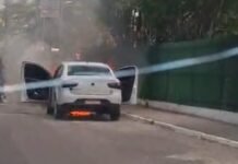Carro é destruído por incêndio na Avenida Brasil na Zona Centro-Sul de Manaus