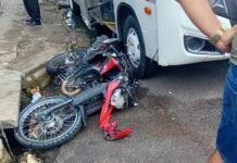 Motociclista e passageiro ficam feridos após serem arrastados por ônibus na Zona Norte de...