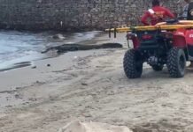 [Vídeo]: Jacaré gigante é visto na beira da praia da Ponta Negra e assusta...