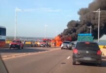 [Vídeo]: Ônibus é consumido por incêndio na Ponte do Rio Negro em Manaus