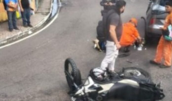 Um acidente de trânsito registrado na manhã desta quinta-feira (29) deixou um adolescente de 16 anos ferido no cruzamento da rua Belo Horizonte com a Avenida Brasil, na Compensa, Zona Oeste de Manaus. O jovem conduzia uma motocicleta em alta velocidade quando colidiu com um carro, causando apreensão entre motoristas e moradores da área.