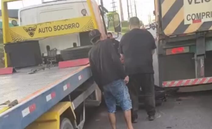 Duas pessoas ficaram feridas em um acidente de trânsito na manhã desta sexta-feira (10), na Avenida Governador José Lindoso, conhecida como “Avenida das Torres”, no bairro Coroado, Zona Leste de Manaus. A colisão envolveu uma motocicleta e um caminhão e causou congestionamento na via.