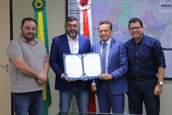 O governador Wilson Lima assinou, nesta terça-feira (30/09), a ordem de serviço para o início das obras de recuperação viária no município de Boca do Acre (a 1.028 quilômetros de Manaus). A assinatura, que contou com a presença do prefeito Frank Barros, foi realizada na sede do Governo do Estado, no bairro Compensa, zona oeste da capital.