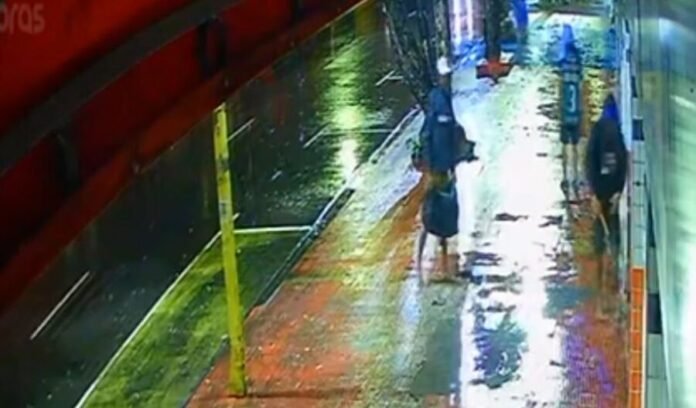 A ação teve como alvo a loja TOKIO. Câmeras de segurança registraram o momento em que suspeitos encapuzados circulam pela área por volta das 2h30, antes de retornarem para arrombar o local.