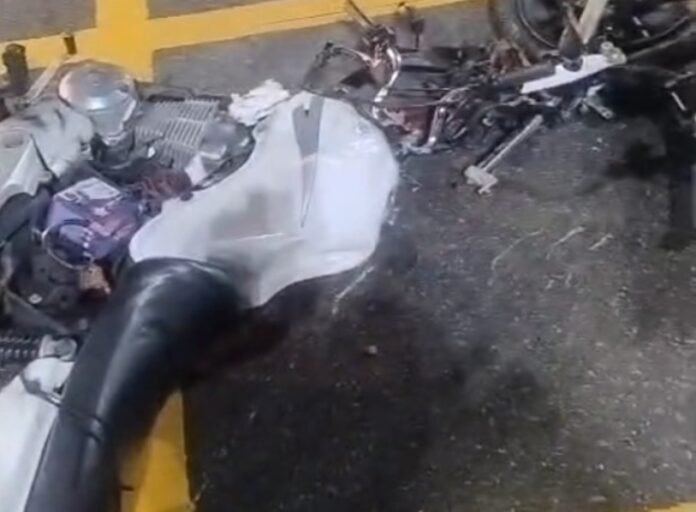 Depois da colisão, o motorista do carro tentou escapar, mas acabou alcançado por outros condutores que o seguiram e conseguiram interceptá-lo alguns metros adiante. A força do impacto deixou a motocicleta completamente destruída.