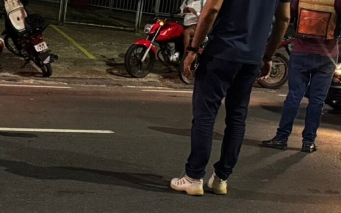 A vítima, que pilotava uma moto Honda Biz com um passageiro, foi atingida por um carro, resultando na queda do veículo e do casal no asfalto.