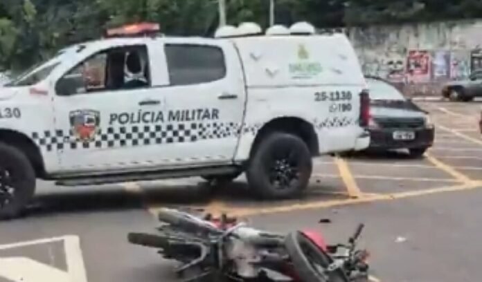 Uma motociclista ficou gravemente ferida após um acidente registrado na manhã desta segunda-feira (8), no cruzamento da Avenida Constantino Nery com a Rua Loris Cordovil, em frente ao restaurante Picanha Mania, no bairro Flores, zona Centro-Sul de Manaus.