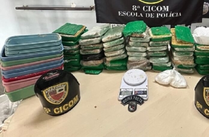 Uma operação da Polícia Militar resultou no fechamento de uma loja de conveniência que servia de fachada para o tráfico de drogas no bairro Flores, Zona Sul de Manaus, na noite desta quinta-feira (11). No local, foram apreendidos ao menos 50 kg de entorpecentes.