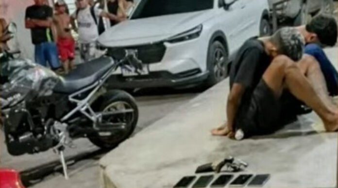 Imagens registradas no momento da ação mostram a perseguição e a abordagem policial. Os suspeitos tentaram fugir em uma motocicleta, mas foram alcançados e detidos em flagrante. Com eles, os policiais apreenderam um revólver calibre .32 com duas munições intactas, além de cinco celulares, uma carteira com documentos e outros pertences das vítimas.