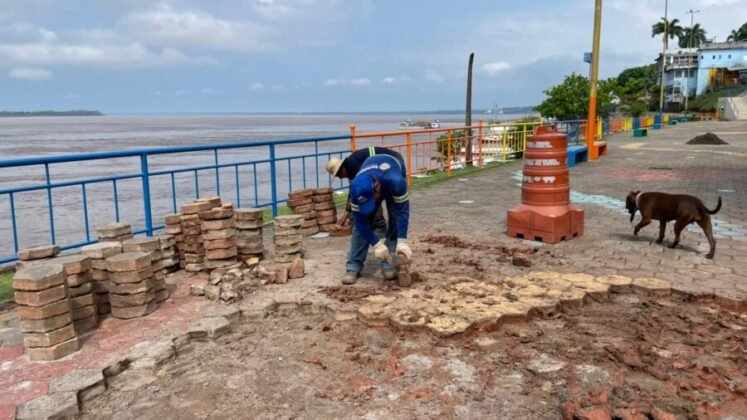 O Mirante também está sendo repaginado, com serviços de pintura e manutenção que estão transformando o local em um ambiente ainda mais agradável para o lazer e contemplação do Rio Amazonas e do pôr do sol. Já na orla da cidade, os trabalhos incluem a retirada, limpeza e pintura dos blocos sextavados, além do nivelamento do piso, proporcionando mais conforto e segurança para quem frequenta o espaço.