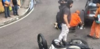 Acidente entre carro e moto deixa ferido na Avenida Rodrigo Otávio...