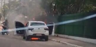 Veículo pega fogo e causa lentidão no trânsito na Avenida Darcy...