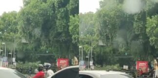 Árvore cai e atinge carro após forte chuva na Avenida Ferreira...