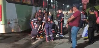 Mulher tem perna esmagada por ônibus após queda de moto na...