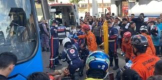 Motociclista tem perna esmagada após colisão com ônibus no Novo Israel...