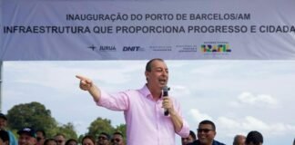 Omar Aziz participa da inauguração do novo porto de Barcelos, no...