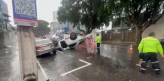Acidente com capotamento deixa médica ferida no Centro de Manaus
