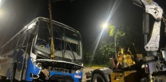 Ônibus sobe em barreira de proteção após acidente na Avenida das...
