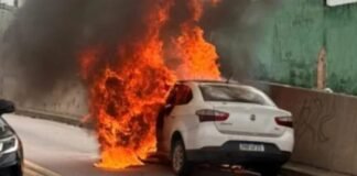 Veículo pega fogo e causa lentidão no trânsito na Avenida Darcy...