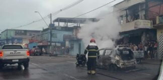 Carro é destruído por incêndio e provoca transtornos no trânsito na...