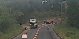 Veículo fica de ponta-cabeça após capotamento na rodovia Manaus-Itacoatiara