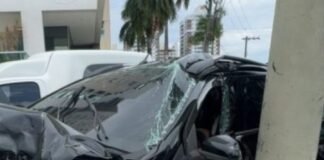 Acidente lança carro contra canteiro central na Zona Oeste de Manaus
