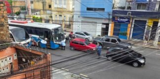 Acidente com ônibus de rota causa congestionamento no Centro de Manaus