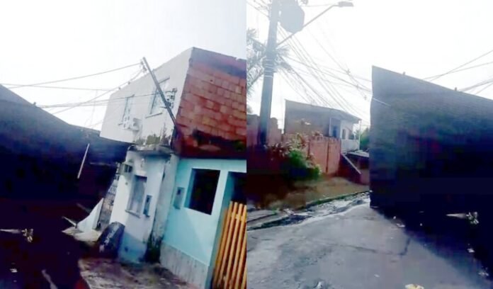 Imagens que circulam nas redes sociais mostram o vento agindo como um vendaval, retirando toda a estrutura de madeira e telhas do imóvel, que ficou exposto. O Centro de Cooperação da Cidade informou que, até 21h50, foram registradas 32 solicitações decorrentes da chuva, volume impulsionado pelas fortes rajadas de vento.