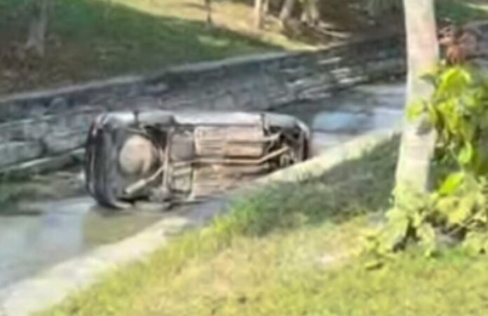 Um acidente de trânsito deixou um veículo destruído, na tarde de quarta-feira (3), no Conjunto Galileia, Zona Norte de Manaus. O motorista perdeu o controle em uma curva, avançou sobre uma área de mata e acabou despencando em um igarapé. As causas da perda de direção ainda não foram esclarecidas.