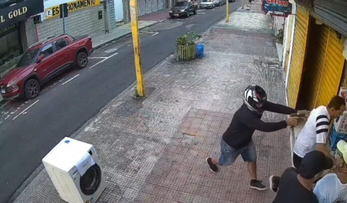 A loja fica na Doutor Moreira, mas já era no fim do expediente e havia poucas pessoas nas ruas. Nenhuma viatura da polícia passou perto no momento do crime.