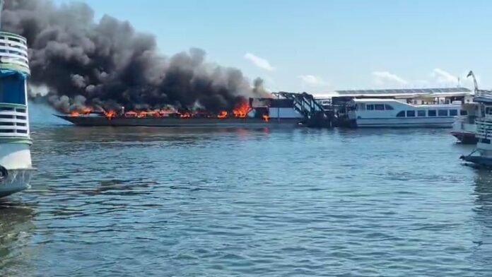 Um incêndio de grande proporção destruiu por completo uma lancha ancorada no Rio Tapajós, em Santarém, oeste do Pará, na manhã desta terça-feira (15). A embarcação, que era usada para transporte de passageiros na região, estava parada para manutenção quando as chamas começaram e se alastraram rapidamente, consumindo toda a estrutura.