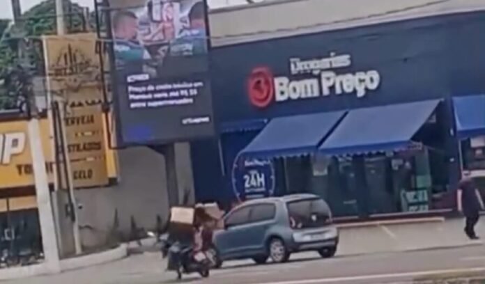 Um vídeo registrou o momento exato em que uma motocicleta atropelou uma mulher na Avenida Torquato Tapajós, em Manaus, neste domingo (7). A vítima caminhava à beira da via quando foi atingida.